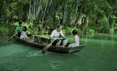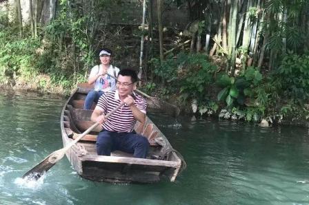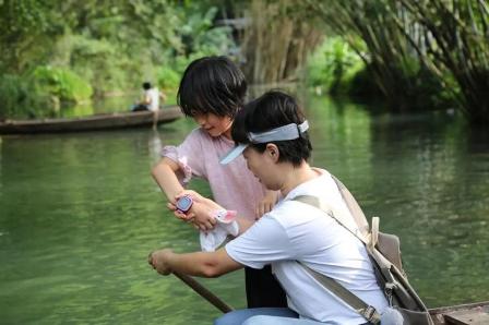 農場背后有一條小溪,無疑是避暑遮涼最好的選擇。水面上的小船,大家三五成群的下船,笨拙的劃動著手里的船槳,速度快慢、能否掌握方向什么的,都不重要,能讓大家找回童真的快樂才是重點。
