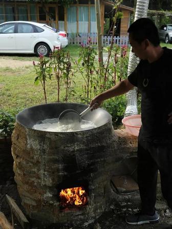 在農場的一側,有一口老式的磨坊,老師帶著孩子們從浸泡豆子到推動石磨、再到煮豆漿,孩子們參與感非常強。你看他們推動石磨的小身影,哪像平時在家里嬌滴滴的樣子。