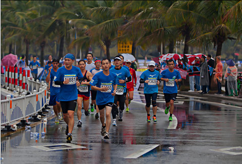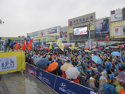雖然天氣寒冷,溫度在攝氏14度左右,風雨交加,寒風習習,但順益的運動員們依然奮勇當先,在龐大的隊伍中挑戰身體的耐力, 哪怕到最后,運動員們感覺到自己的膝蓋每跑一下都得強忍著刺痛,也決不放棄,堅持在跑道上發揚著順益人團隊、協作、保證完成任務的精神意志。