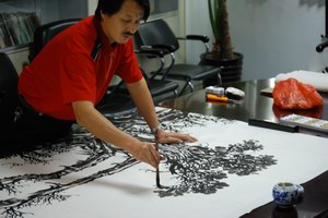 邵永杰是當代著名書畫家,從事文化藝術工作二十六年有余,集傳統,現代及眾家精華于一身,筆墨豪放、氣勢揮宏、自成風格,享譽國內外。今年圣誕之際邵先生作客順益,并在我司揮毫潑墨,為我司送上了宏篇巨作,讓我們大開眼界!