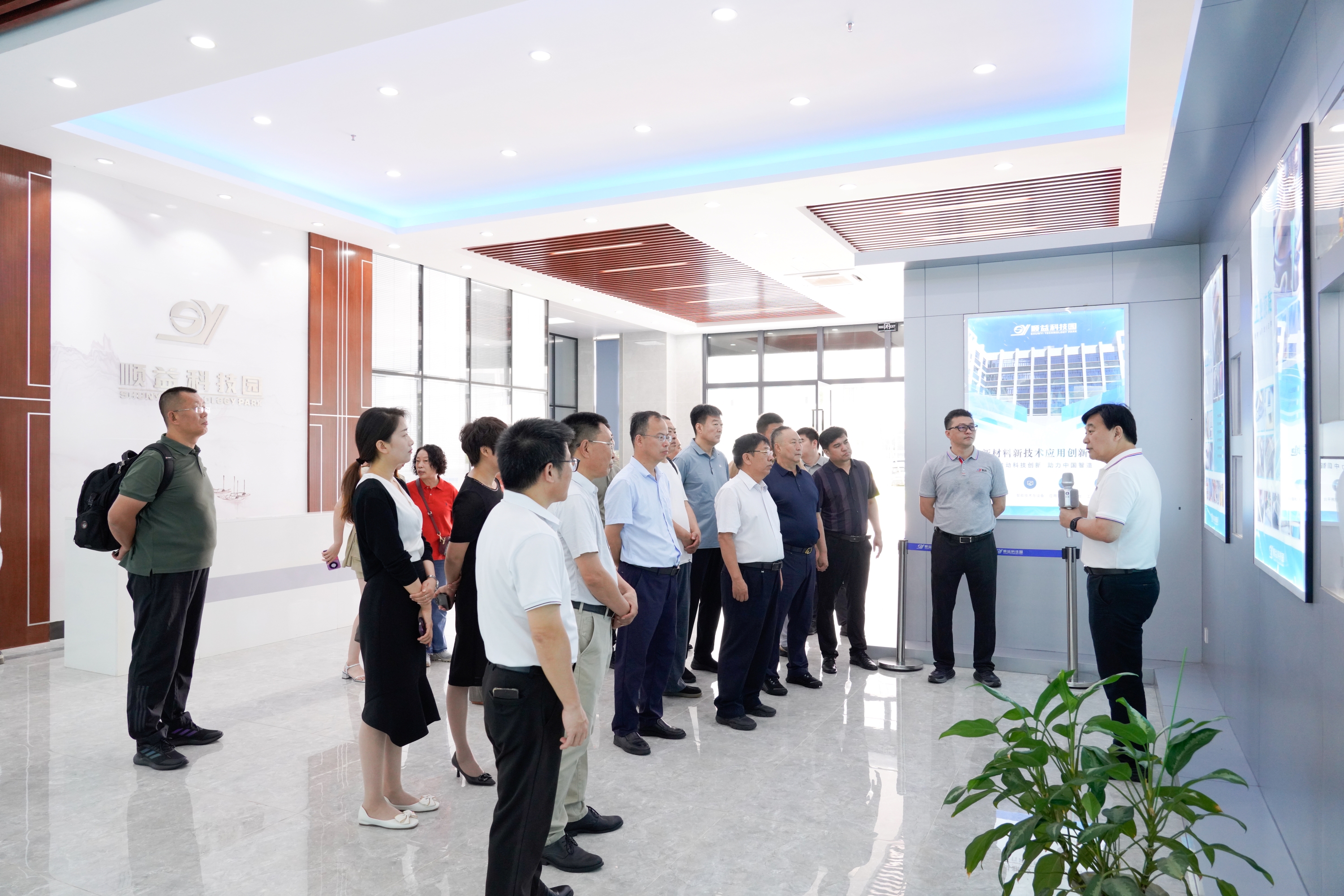 在參觀考察過程中,協會代表團詳細了解了順益科技園的規劃、建設情況以及園區內各項服務資源和實驗中心等設施。協會代表團表示,他們對順益科技園在新材料、智能技術等領域取得的成就表示贊賞。